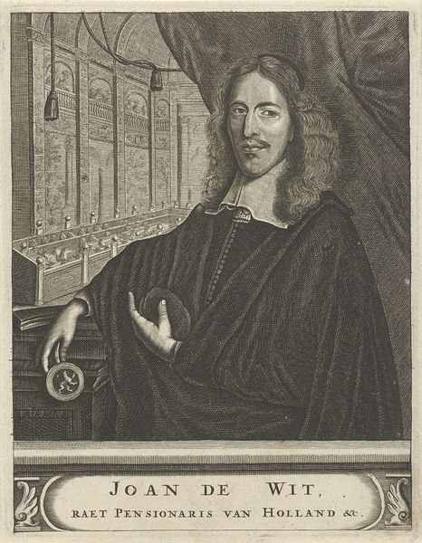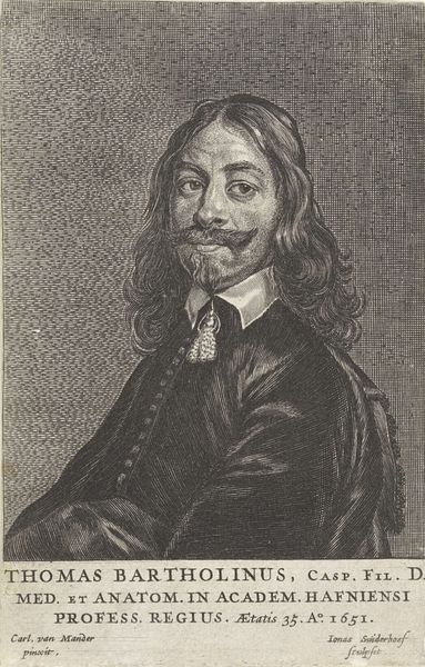 Petrus Clouwet’s ‘Portrait of Christoffel Jacobsz. van der Laemen’ is an engraving, rich with linear textures and tonal contrasts. The composition, primarily vertical, focuses on the sitter, framed by a draped curtain that adds depth. The eye is drawn to the face, with its delicate lines capturing the subject's gaze and the details of his hair and mustache. Clouwet's engraving technique uses a system of fine, parallel lines and cross-hatching to create a range of values, from light to shadow. The textures achieved through these lines—the soft fabric of the curtain, the smoothness of the skin, and the sheen on the sitter’s garments—engage with the semiotic codes of portraiture. The arrangement of light and shadow is not merely representational; it structures the image, drawing attention to the subject's face and hands, which communicate character and status. The formal restraint and technical precision of the engraving invites an ongoing interpretation of its cultural and aesthetic values.