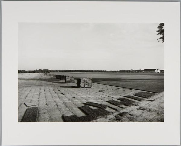 Curator: Lawrence McFarland's "Long Island Landscape (construction site with grocery carts)" presents a stark, monochrome vision. Editor: It feels desolate. Like a forgotten corner, punctuated by the incongruous sight of those discarded grocery carts. They're like ghosts of consumerism, haunting the landscape. Curator: McFarland often focused on the fringes of urban and suburban spaces. His work examines the intersection of human activity and the natural world. Editor: You know, it's funny, the carts, the heaps of earth – it almost feels like an archaeological dig, unearthing the layers of our modern lives. The mundane made monumental. Curator: Indeed. This piece invites reflection on land use, waste, and the often-unseen consequences of development. Editor: I'm walking away with a sense of melancholic beauty. It's a bit haunting, actually.