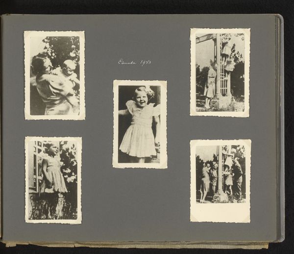 Editor: Here we have a page from a photo album, "Officier van de Wehrmacht met vrouw," dating from 1941-1942. It's a gelatin-silver print, an anonymous work held at the Rijksmuseum. It feels unsettling, like a collection of captured moments tinged with a sense of forced normalcy. What strikes you most about this work? Curator: It's precisely that tension between the posed and the seemingly candid that I find so compelling. Look at the iconography of power embedded in the Wehrmacht officer’s uniform – what does it communicate, and to whom? How do those symbols resonate against the banality of domestic life depicted in other photos on the page? Editor: That’s a good point. I hadn't considered the power dynamics visualized there. Do you think that’s part of the intended message or a consequence of the historical context? Curator: I believe the cultural memory embedded in these images is multi-layered. At face value, we see posed images for sentimental keepsakes. But through the eyes of history, those same images become documents of occupation and collaboration. Ask yourself, what cultural narratives were intentionally being crafted versus what is revealed unintentionally? The symbolism and visual choices act as echoes of a complex historical narrative. Editor: So, the seemingly mundane photo album becomes a battleground of conflicting interpretations? Curator: Exactly! It challenges us to reconcile the personal and political, and examine how propaganda and control work on individual lives. The photograph of the officer and wife are not merely a domestic record, but stand for a culture being imposed upon another. Editor: It's almost eerie how everyday scenes can be loaded with so much symbolic weight. Curator: Precisely. Now we can approach this album page no longer as simple family snapshots, but as artefacts potent with embedded cultural memory. It prompts profound questions about complicity and remembrance. Editor: Thank you! I am so much more aware of the cultural weight that the photos carry and how they function now.