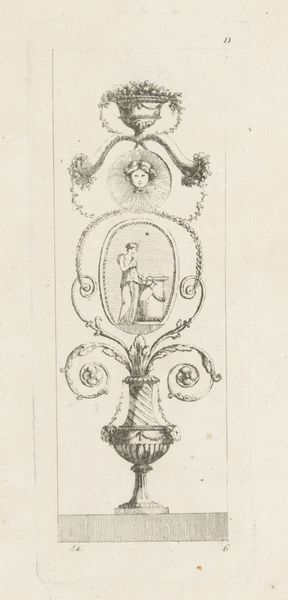 This delicate ink drawing, ‘Medaillon met allegorische voorstelling van de Herfst’, was created by Johannes van Dregt in the 18th century. The artist used the simple medium of pen and ink to create an allegorical scene representing autumn. The fine lines and subtle shading reveal the artist's skilled hand and meticulous technique. The ink’s fluidity allows for intricate details, like the cherubic figure and the symbolic elements associated with the season, such as foliage and perhaps a pinecone. The drawing may have been a preliminary sketch for a larger work or a design for printmaking. In either case, the artist’s labor-intensive process reflects the values of craftsmanship and artistic skill prevalent in the 1700s. Paying attention to the materials and processes used in the making of this artwork gives us a deeper appreciation for the artist's skill and the cultural context in which it was created, blurring the lines between fine art and craft.