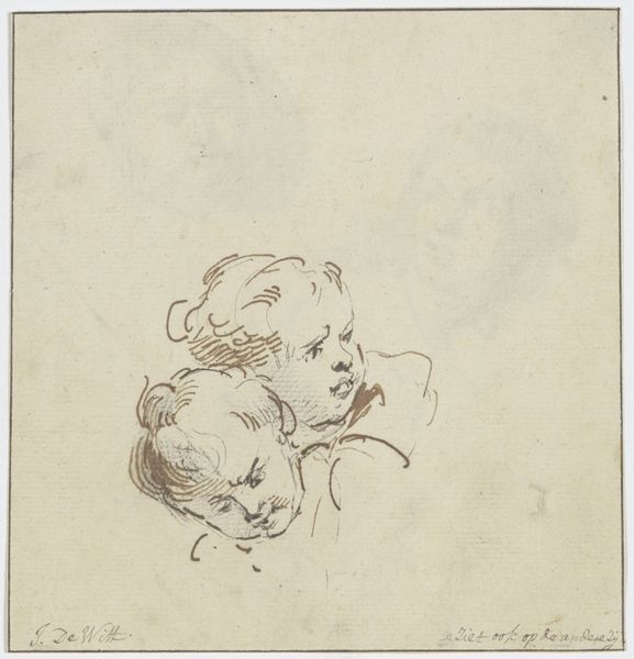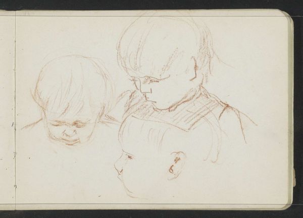 Paul Gauguin made this ink on paper drawing titled, Two Studies of a Child's Head, sometime in the late 19th century. The artist is well known for his post-impressionist paintings but this sketch gives us insight into his artistic process. Gauguin lived during a time when art academies and salons held significant power in dictating artistic standards. We can see him moving away from those conventional expectations. It's important to remember that even quick sketches like this one were influenced by the cultural context of his time. The focus on informal and intimate subjects reflected a shift toward more personal and subjective experiences. The study of children's heads may indicate a desire to explore themes of innocence or familial connection, which were popular among artists and patrons during this period. To truly understand this piece, we can delve into Gauguin's personal life and artistic development, as well as broader social and cultural trends of 19th-century France.
