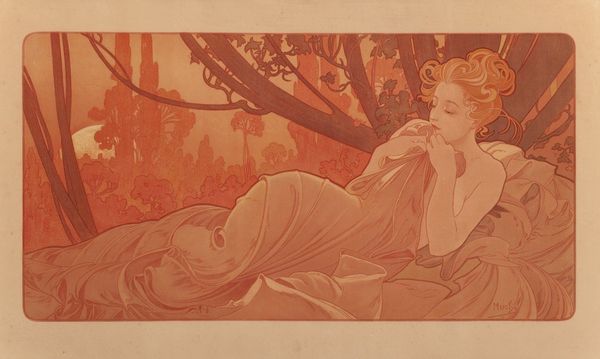 Editor: This “Untitled” painting by Paul Ranson uses tempera, and I find its flatness almost… comforting? What do you see in this piece? Curator: Let’s look at how Ranson employs tempera. The medium itself, demanding careful layering, resists traditional notions of painterly skill. It rejects oil's illusionism, instead asserting the materiality of the pigments themselves. This emphasis aligns with a shift towards acknowledging artistic labor and challenging academic standards, don't you think? Editor: Absolutely, but what about the subject matter? The nude seems rather traditional. Curator: Precisely! But observe how Ranson handles it. The figure is stylized, almost naive. Her simplified form and the flatness undermine any attempt at classical idealism. It makes me wonder about the context of production; was this a commentary on the commercialization of the female form, by stripping it of its seductive qualities? Editor: Interesting! The background too—it's quite decorative, almost like a tapestry. Curator: It speaks volumes. By flattening space and integrating the figure into the design, Ranson equates the nude with other elements of material culture. Is it decorative art or high art? He forces us to question those distinctions, right? Editor: I see what you mean! By considering the materials and the way he manipulated them, Ranson elevates the work while simultaneously questioning the traditional artistic hierarchies. Curator: Precisely! It invites a deeper look into how artistic value is constructed through the labor and the cultural context. Editor: It certainly does. I'll never look at tempera the same way!