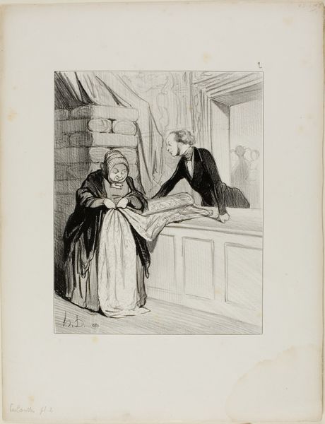 Curator: Jean-François Millet’s “The Village Dressmakers,” likely created between 1835 and 1900, offers a glimpse into the domestic sphere of labor through an engraving on paper. Editor: The somber tones create such an atmosphere, wouldn’t you say? A certain quiet determination pervades. It speaks to the realities, the working conditions of these women... Curator: Absolutely. Note how Millet’s realism focuses on their roles. It highlights their contributions to a burgeoning economic system at the turn of the century. Were they adequately compensated? That’s an intersection of gender and economic agency which deserves scrutiny. Editor: The way the artist uses line and shadow is fascinating. Observe how the light falls on the fabric; that’s not simply visual. It is meant to indicate the painstaking detail required in their craft. Engraving allowed for mass production. Who was going to buy them? Curator: Considering the genre, we can't forget to examine the narratives inherent in portraying working-class women. We see echoes of similar images being disseminated across Europe in other countries as well, often through prints. These prints shaped the narrative about them. Were they a form of subjugation of female agency? Editor: We cannot also simply see them as simply passive recipients in an unjust economic arrangement. Look at how their physical gestures illustrate collaboration. Perhaps through this work, the artisan can achieve a degree of self-autonomy that wasn’t granted any other way? Curator: Perhaps this artwork invites a necessary re-examination of their role. It's more nuanced, though it is not unproblematic, of course. Editor: Looking closely has really opened up new ways of considering the nature of working women. Thank you!