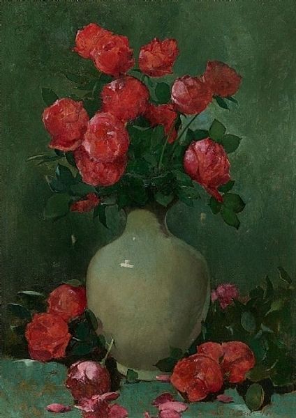 Helene Schjerfbeck made this painting of roses in a blue-green vase using thin layers of watercolor. It feels like she worked quickly, intuitively, and this is what gives the picture its life. Look at how she uses these translucent washes to create a kind of quiet intensity. It’s all about the material qualities of the paint itself. The colors are muted, almost grayed out, but they sing together like a perfectly tuned chord. The vase, sitting on a little yellow table, becomes a solid anchor for the lightness of the flowers. The way she suggests the petals with just a few strokes. It’s about gesture, really, and about trusting the process. Schjerfbeck reminds me a little of Giorgio Morandi, another artist who found endless possibilities in simple, everyday objects. Both artists show us that painting is not just about representation, it's about a way of seeing and feeling the world.
