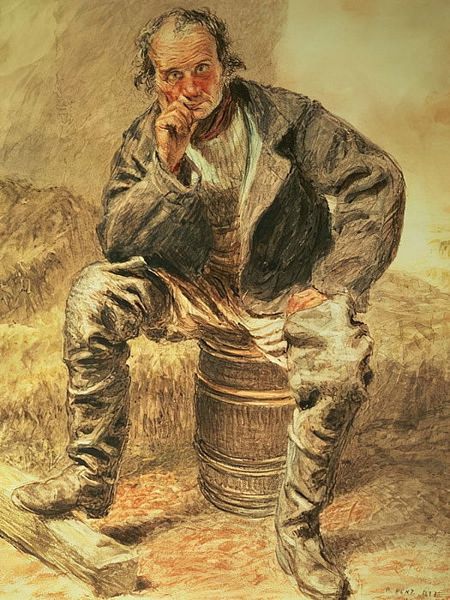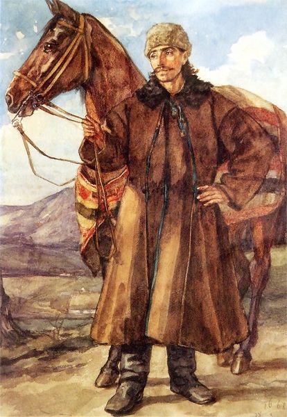 Henryk Rodakowski created this watercolour painting, called 'Ukrainian', using muted earth tones and dynamic brushstrokes to capture a craftsman at work. The composition draws our eye to the figure in the foreground, whose labor is etched into the lines of his face and the set of his shoulders. Rodakowski's formal approach can be understood through the lens of semiotics, where the act of sculpting is laden with cultural significance. The manipulation of raw material into a refined form mirrors the artist's own process. The chisel, a tool of transformation, becomes a signifier for human potential and the imposition of order onto the natural world. Note how the rough textures of the wood contrast with the smooth, emerging shape of the sculpture. This dialectic between the raw and the refined raises questions about our relationship with the material world and the artistic impulse to give form to the formless. It's a theme that continues to resonate in contemporary discourse around art, culture, and identity.