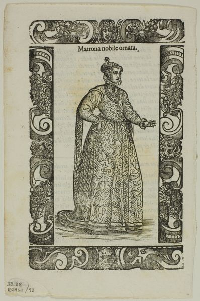 Editor: So, this engraving, "Courtisane uit het 'moderne' Rome van 1598," by Christoph Krieger… It’s got this incredible detail, all created through the process of intaglio printing. What’s particularly interesting to me is the way the labor that went into creating those fine lines kind of elevates the image beyond just a portrait, do you agree? Curator: Absolutely. Let's consider the means of production. Krieger didn't just depict a courtesan; he participated in a system of image dissemination tied to commerce, visibility, and even aspiration. The very act of reproducing this image through engraving speaks volumes about its social function and the economic engine of printmaking at the time. How does seeing it as an object tied to its means of reproduction change the work for you? Editor: Well, it’s fascinating to consider how a print like this blurred the lines between art and craft. Was it a luxury good, or a relatively accessible image that helped construct ideals of beauty and social status? Curator: Precisely! Think about the materiality of the engraving itself—the paper, the ink, the metal plate, each carrying its own value and history. The consumption of this print goes beyond mere aesthetics; it’s about engaging with a manufactured object that reflects the societal values and the mechanisms of cultural production in late 16th-century Rome. Who had access to create them, own them and display them? Editor: That shifts my understanding. The courtesan becomes almost secondary to the commentary on production, consumption, and class…It’s like the image’s real value lies in what it reveals about the social and economic networks of its time. Curator: Indeed. The image functions less as a window into individual beauty and more as a mirror reflecting the social forces at play in the creation and consumption of art itself. It pushes us to re-evaluate who and what gets represented and, just as critically, *how*.