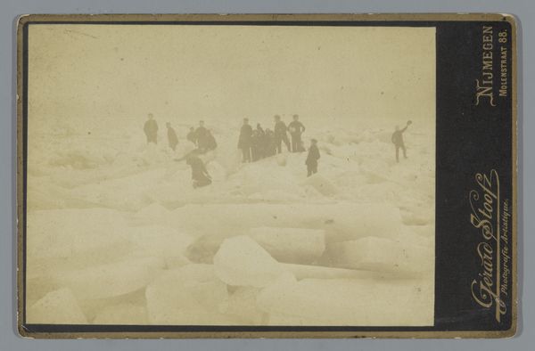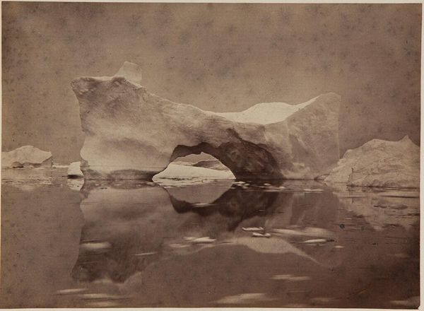 Editor: This is an untitled photograph by John L. Dunmore, sometimes called "The Steamer Panther forcing her way through the hummocky ice." It depicts a ship navigating through a field of ice. What strikes me is how small the ship looks against the vast, icy landscape. What do you see in this image? Curator: I see a stark visual representation of human ambition versus nature's power. This image was created during a period of intense exploration and exploitation of natural resources. The ship, a symbol of industrial progress, is forcing its way through a landscape that is both beautiful and unforgiving. It provokes a consideration about the colonial drive to conquer and dominate, even at the expense of fragile ecosystems. Editor: So, it’s not just a picture of a ship, but a statement about the relationship between humanity and the environment? Curator: Precisely. It encourages us to reflect on the ethical implications of exploration, resource extraction, and the lasting impact on marginalized communities and vulnerable environments. Editor: That gives me a lot to think about. Thanks! Curator: My pleasure. The image certainly speaks volumes about our continued need for critical engagement with the past.
