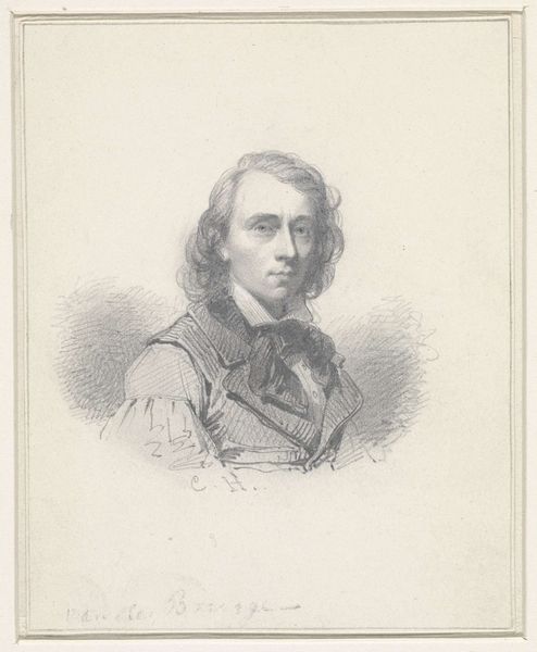 Editor: So, this is "Self-Portrait" by Christian Ernst Stölzel, created in 1822. It’s a pencil drawing, and I’m struck by its almost haunting quality. The shading gives him a real depth, like he's staring right through you. What's your take on this piece? Curator: Haunting, yes! I see that too. And maybe it’s the intimacy of a self-portrait done in pencil, you know? There's something very vulnerable about it. This was a time when artists were really exploring the self, delving into emotions and inner states, and you can see that reflected here. Do you feel any sense of that Romantic spirit? Editor: Absolutely. It's not just a likeness, is it? There's a feeling behind the eyes... like he's contemplating something profound. The details in the clothing – the folds and the ruffled shirt - versus the simplicity of the face is an interesting contrast. Curator: Precisely! The controlled lines create a refined outer image, almost a façade, while the slightly wild hair and the intense gaze hint at a more untamed inner world. He’s wrestling with something. Imagine him, alone in his studio, looking in a mirror, trying to capture not just what he sees, but what he *feels*. Editor: It's incredible to think about that process. I see what you mean. The detail adds to this… sense of internal conflict or even introspection. Curator: Exactly. It’s not just a record, but a real dialogue with himself, captured in graphite. Isn’t it interesting how something as simple as a pencil can convey so much depth of feeling? It feels almost like a secret whispered across the ages. Editor: Yeah, I was just looking at the details again – the way the light falls, those soft touches – this gives a different perspective to just what you can achieve with something as unassuming as a pencil. Thanks! Curator: My pleasure. Every time I look at a self-portrait like this, I'm reminded that art isn't just about skill, but about the artist daring to reveal a piece of their soul.