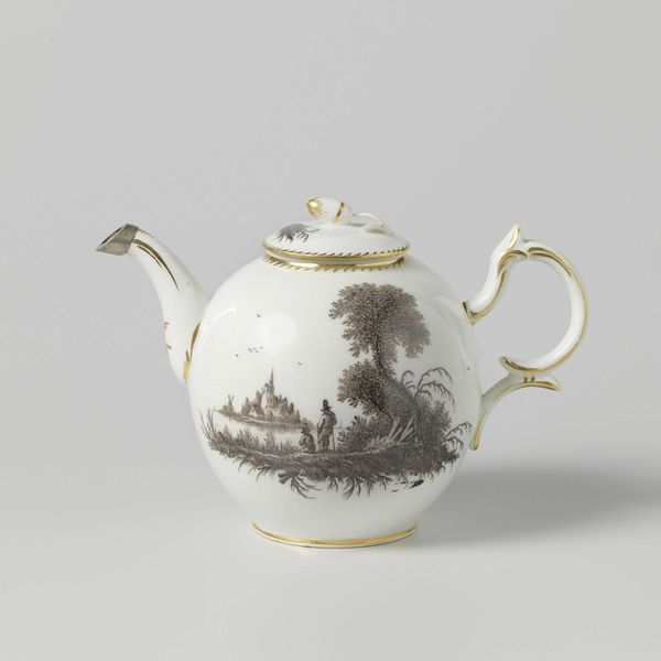 Here we have a tea service, crafted by Loosdrecht. Objects like this teapot can tell us a lot about 18th-century Dutch society. The painted scenes, the very act of drinking tea, speak volumes about gender roles and social class. Notice the delicate rendering of figures, likely depicting idealized rural life. Tea drinking was initially an aristocratic habit, but it gradually permeated the bourgeoisie. But let's think about the labor. The image evokes leisure and refinement while obscuring the brutal realities of colonial trade. Tea was cultivated and harvested through exploited labor. The porcelain itself was born out of intense competition, often relying on appropriating techniques. While we savor the beauty and craftsmanship, we can’t forget the complex web of power and exploitation that made such objects possible. This tea service allows us to consider these complex narratives, and the emotional dimensions of partaking in rituals steeped in history.