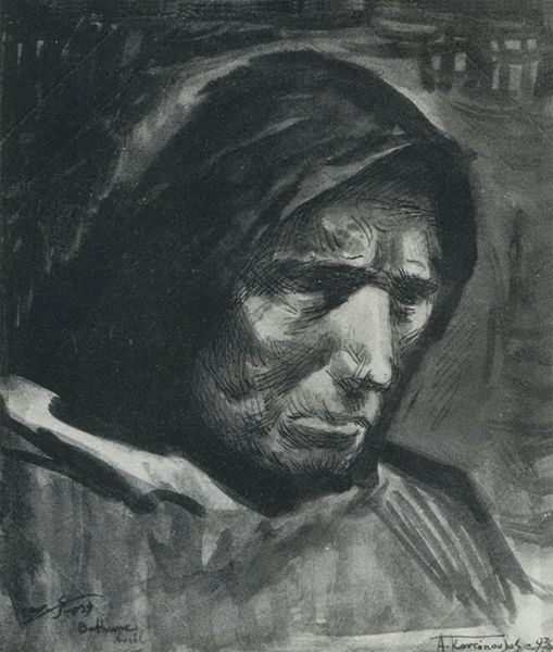 Curator: We are looking at Van Gogh’s "Head of a Peasant Woman with Dark Cap," from 1885, currently residing at the Kröller-Müller Museum. Editor: Striking! The dark background makes her face the focal point, emphasizing the thick brushstrokes and rough texture. It’s as though we are observing a landscape carved directly into the paint. Curator: It’s worth considering that Van Gogh created these studies while in Nuenen, a Dutch village, immersing himself in the lives of the peasant community. This was a period when he was deeply influenced by Millet, reflecting an interest in the dignity of labor and the lives of ordinary people. Editor: Absolutely, and it’s evident in his technical choices. See how the impasto technique brings a tangible quality to her skin, imbuing a sense of weathered resilience. There is almost a raw immediacy, a sort of expressionistic turn before the full break from realism. Curator: Van Gogh's approach here reveals a critical dialogue of class and representation. Consider that the decision to portray a peasant woman, with such earnestness, counters the often idealized or romanticized depictions of rural life common at the time. It’s a conscious act of elevating the working class to the realm of artistic consideration. Editor: True, yet the composition seems equally deliberate, like an experiment in form. Observe the simplification of planes and the stark contrast between the dark cap and the illuminated face—it verges on abstraction, even if anchored in the specifics of her features. It creates a sort of symbol for this working woman rather than a true likeness. Curator: Precisely, Van Gogh’s Nuenen period, represented so well here, acts as both a social statement and an exercise in representing character. These heads provided studies to develop the figures in The Potato Eaters. Editor: Yes. Van Gogh has masterfully captured, not only the woman's external likeness, but some inner fortitude as well. Curator: And so, his art provides a glimpse into a critical historical moment and the emergence of social realism. Editor: An expressive blend of texture and tone in an artwork, open for different viewpoints and considerations.