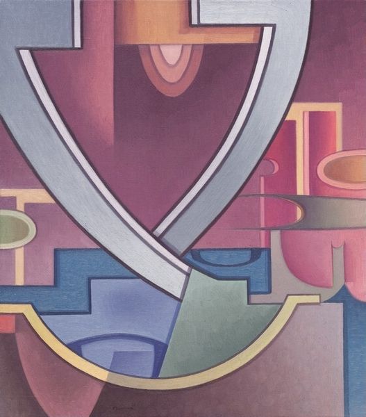 Here is the story about the given artwork: Fernando Lanhas created this painting in the twentieth century with simple shapes and forms. The most prominent element is the arc, a fragment of a circle pregnant with meaning. The circle is an ancient symbol found across cultures, representing wholeness, eternity, and cyclical time. Think of the Ouroboros, the snake eating its tail, a symbol of endless return, or the halos encircling the heads of saints, emblems of divine perfection. Incomplete, this arc echoes a sense of yearning, a quest for completion. It reminds me of the lunar crescent, a symbol of change, transition and the passage of time, like the phases of life, mirroring our own human experiences of growth and decay. The arc then, is more than just a shape; it's a vessel for our collective memories, fears and hopes. It resonates within us because it reflects the universal cycles of existence.