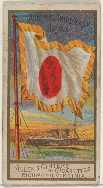 This is “Commodore’s Pennant, Great Britain”, one of the cards from the Naval Flags series produced by Allen & Ginter Cigarettes. These cards were distributed with cigarette packs, a common marketing tactic in the late 19th century. Here we see an idealized image of British naval power, symbolized by the commodore's pennant. The flag, billowing above a warship, represents British identity, a symbol of pride, but also of colonial reach. The commodore was a rank of the Royal Navy and would have been in charge of several ships. This card circulated at a time when tobacco companies thrived, often relying on exploited labor. By invoking the imagery of naval strength, the card taps into a sense of national identity and power, subtly reinforcing the social hierarchies and economic practices of the time. Though small, this card speaks volumes about power, commerce, and the stories we tell ourselves about who we are.