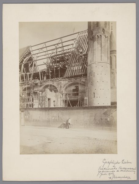 This vintage photograph captures the Mosque in Naghsh-e Jahan Square, Isfahan, Persia, and was taken by A.G.A. van Eelde. The print, with its grayscale palette and matte texture, emphasizes the geometric forms of Islamic architecture against the vast openness of the square. The composition is structured around a careful balance between the horizontal expanse of the square and the vertical thrust of the mosque's minarets and dome. Van Eelde uses light and shadow to define these architectural volumes, creating a sense of depth and solidity. The semiotic interplay between the geometric precision of the mosque and the implied freedom of the open space suggests a dialogue between order and possibility, a theme often found in representations of sacred spaces. Note how the subdued tonality reinforces the monumentality of the structure, inviting contemplation on the cultural and historical weight it carries. This photograph serves not just as a document but as a formal study in contrasts, revealing a deeper engagement with the interplay between space, form, and cultural meaning.