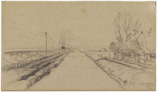 Georges Michel created this drawing of the Seine-kade near the Legion d'Honneur using graphite on paper. Graphite, derived from the Greek word "graphein" meaning "to write," offers artists a direct and immediate way to capture their vision, distinct from the more laborious processes of painting. The subtle tonal variations and delicate lines reflect a careful attention to detail and a mastery of technique. Look closely at the texture of the paper itself, which subtly influences the appearance of the drawing. The artist used this humble medium to create a sense of atmosphere and depth, inviting viewers to contemplate the scene. Consider how the very act of drawing—the repeated application of graphite to paper—imbues the artwork with its own unique character. This challenges us to reconsider the value we place on different art forms, prompting us to recognize the skill and artistry involved in the seemingly simple act of drawing.
