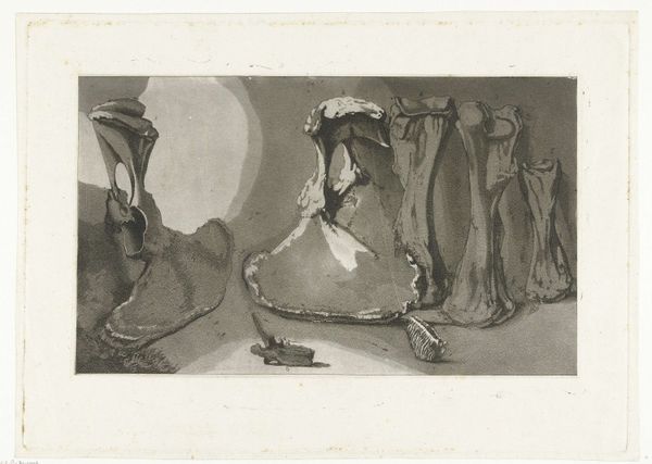 Curator: Here at the Rijksmuseum, we have an etching titled "Staaande geiten," or "Standing Goats," likely dating sometime between 1648 and 1733. The artist behind it is, sadly, anonymous. Editor: Immediately striking. There’s an almost frantic energy to the linework, wouldn't you agree? And a strangely captivating realism within that chaos. Curator: It's remarkable how these renderings of goats achieve such detail. We can imagine the context of the time, wherein access to animals such as these would have been more easily achievable, allowing for such a study of the figures. I wonder what they stood for in this historical period. Perhaps a subtle nod to rural life? Editor: Possibly. Formally, though, I'm drawn to the balance, or perhaps deliberate imbalance, in composition. Each goat occupies its own framed space. There's this rhythmic structure, this triptych of sorts, achieved through careful line work, using white space. The artist almost sculpts with light. Curator: I wonder if the animals featured here are in reference to classical representations. During the 17th and 18th centuries, wealthy landowners held immense power; did the representation of animals play into the cultural imagery of the era? Editor: Maybe. The ambiguity serves it well. The contrast enhances the realism—makes them feel incredibly present. The composition and form give the animals some agency that maybe challenges expectations, even today. Curator: Yes, regardless of the intention, it is a snapshot of society. Its function extends beyond mere observation, sparking thoughts about class, agriculture, and our connection to nature, still visible generations later. Editor: Absolutely, this simple scene reverberates outward with such powerful intensity—proof of just how effective pure, distilled form can be.