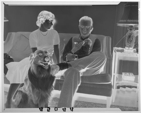 Editor: This is an untitled photograph by Martin Schweig depicting an older man holding a baby, seated next to a woman. There’s a striking intimacy despite the limited information we have about the subjects. What stories do you think this image is trying to tell? Curator: The image offers a glimpse into shifting family dynamics. Consider the power dynamics at play. The older man holds the child, perhaps challenging traditional notions of motherhood. How does this inversion speak to societal expectations and the evolving roles of men and women? Editor: That's a powerful point. It definitely makes me reconsider my initial assumptions about the subjects. Curator: Right! Considering it's from the Harvard Art Museums, it invites inquiry into class and privilege. Family portraits can reveal so much about social structures. What did you learn? Editor: I learned to look beyond the surface and consider the societal implications of seemingly simple images. Curator: Exactly! Art reflects and shapes our understanding of the world.