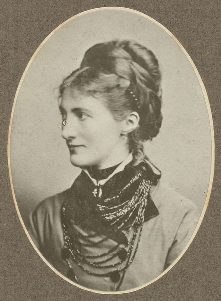This is a photograph of Mrs. Schmidt van Gelder-Coster, made by Photographie Française in Amsterdam. Photography in the 19th century provided a new way of seeing the world and representing social status. In the Netherlands, portrait photography became a popular way for middle-class citizens to present themselves. It was considered a very modern way to solidify their place in society. This portrait of Mrs. Schmidt is particularly interesting because of her austere gaze and refined attire which suggests both wealth and restraint. We see the institutionalization of photographic studios like Photographie Française as central to the production and dissemination of these carefully constructed public images. To fully understand such a portrait, it is important to investigate the sitter's social background and the photographer's artistic approach. By consulting archives, social histories, and photographic journals, we can get a better sense of the complex social and institutional forces that shaped this image.
