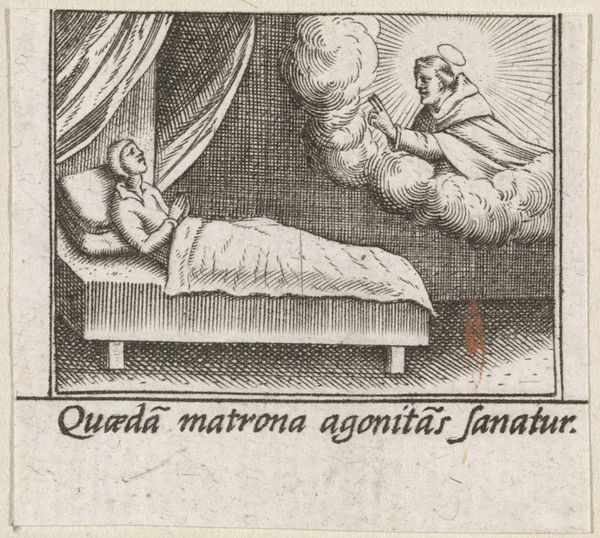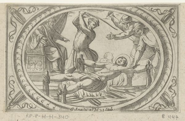 Curator: This engraving by Pietro Santi Bartoli, dating from the late 17th century, presents "Plate 5: Isaac telling Esau to hunt for meat at left and Jacob and Rebekah at right," inspired by a lost fresco from the Vatican Loggia. What strikes you immediately? Editor: The crisp detail, despite its age, and the sharp linear quality. It feels intentionally austere. A depiction of scarcity maybe? The story it tells appears, at least at first glance, to be rather dark. Curator: Yes, well spotted. Bartoli, a key figure in Baroque printmaking, here reinterprets a scene of deception and familial conflict. We see Isaac, nearing death, instructing his son Esau, while simultaneously, Jacob and Rebekah plot their trickery. This touches on themes of inheritance, identity and manipulation within a patriarchal framework, still acutely relevant. Editor: That speaks volumes considering the social history embedded within printmaking at this time: disseminating narratives and control of the visual became newly democratized, yet also used to uphold hierarchies and existing systems. What about the materials? Is there any record about what influenced his artistic decisions for this series? Curator: Printmaking allowed wider access to art, impacting social understanding of religious and historical narratives, so the print functioned as more than a visual record; it participated in cultural discourse. Bartoli drew from classical forms, popular in baroque era, combining this influence to a narrative depicting ethical and power conflicts that have echoes across time and faith, something explored repeatedly within art historical circles, in terms of medium but also story. Editor: Thinking about the materiality and its connection to craft is fascinating, as this would've been accessible in many ways it created an important record and understanding of these visual motifs from religion to a broader viewership that simply wasn't previously there. Curator: Precisely, and I find Bartoli's commentary on gender dynamics still powerfully relevant in contemporary discussions about agency, and power struggles. Editor: I appreciate your attention to intersectional narratives of identity, gender, and race and its relation to labor with accessibly democratizing visual and philosophical interpretation of these visual motifs.