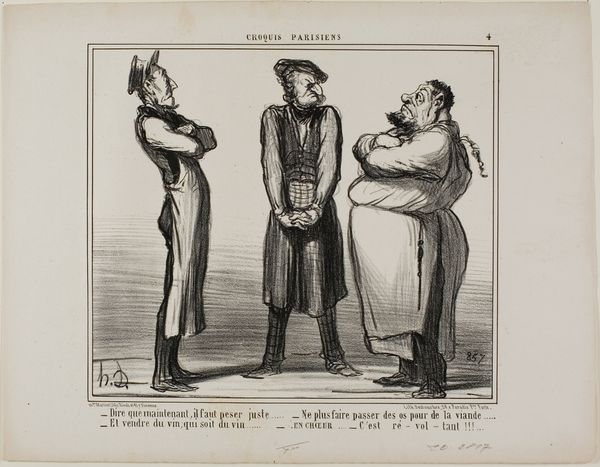 Here we see a lithograph by Honoré Daumier, a French printmaker known for his satirical caricatures of political and social life in 19th-century France. This print, whose title translates to "The men of twenty-five years..., coming to demand reason from M. Flourens for the way they were classified in his book", encapsulates the tensions between scientific classification and human identity. The "men" in question appear more like grotesque caricatures, their identities seemingly obscured by their outfits. Daumier uses the visual language of caricature to critique the scientific reduction of human beings into categories. This work offers a glimpse into how identity, particularly masculinity, was being shaped and contested during a period of rapid scientific advancement. The men’s emotional response—their anger and confrontation—speaks to the personal impact of being classified and potentially misunderstood. The artwork invites us to reflect on how societal categorizations can affect individual identity and emotional well-being.