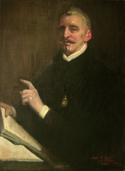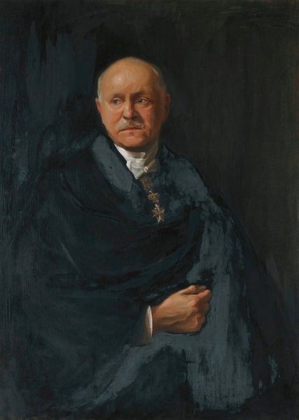 Editor: This is "The Pastor," painted in 1879 by Ferdinand Hodler. It's an oil painting, quite striking in its realism. What grabs me is how…unidealized it feels. He looks worn, almost burdened. What do you see in this piece? Curator: Beyond the surface portrayal, I see a commentary on the changing role of the church in late 19th-century Europe. Hodler, situated in Switzerland, would have been acutely aware of the rise of secularism. Notice the muted colors, the somber atmosphere. Do you think that could reflect a society questioning established authority? Editor: That's a good point. It’s not the celebratory portrait one might expect. He's holding a book – presumably the Bible – but there's no sense of triumph, more of a quiet resignation. Curator: Precisely. And consider the political climate. 1879 was a time of intense social and political upheaval. The burgeoning socialist movements directly challenged traditional power structures, including the church. Is Hodler subtly suggesting that the pastor's influence is waning? His gaze directed away hints to a decline. Editor: So, you’re suggesting the painting functions almost as a social document, reflecting a broader cultural shift? Curator: Indeed. Hodler wasn't merely painting a portrait; he was capturing a moment in time, a questioning of established institutions, framed within the socio-political discourse of the era. Consider where this work might have been exhibited, what audiences would have understood by this seemingly simple image of a man of faith. Editor: I never thought about it that way. Seeing it as more than just a portrait, but as a piece of social commentary. It’s fascinating! Curator: And understanding the political forces at play gives it layers of meaning beyond its aesthetic appeal. Hopefully you take a new and meaningful understanding of history within the visual arts.