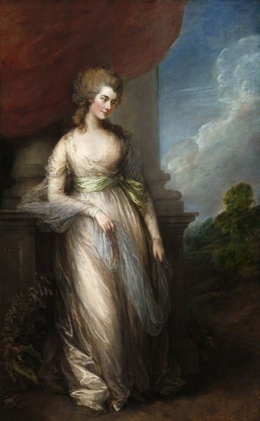 Thomas Gainsborough painted ‘Lady Anne Hamilton’ with oils, capturing her languid pose against a backdrop where nature and classical architecture meet. The eye is immediately drawn to the sitter, yet the surrounding landscape and urn are integral to the portrait’s structure. The artist’s brushstrokes blend and soften outlines to create a harmonious whole. Note how the colour palette unifies the elements. The earthy tones of her dress echo the landscape, while the subtle blues and whites of her attire complement the sky. The classical urn acts as a structural counterweight to the figure, grounding the composition. This arrangement destabilizes the traditional hierarchy of portraiture, where the sitter usually dominates. Here, Lady Anne is part of a carefully constructed arrangement of forms, colours and textures. Gainsborough engages with the philosophical discourse of his time, questioning fixed notions of identity and representation. The portrait invites us to consider how individuals are inextricably linked to their environment. Ultimately, the painting's lasting impact comes from the formal interplay between figure and setting, revealing the artist's innovative approach to portraiture. This innovative approach challenges established meanings, inviting ongoing interpretation.