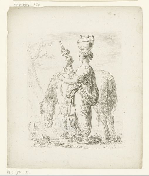Francois Boucher captured this scene of an Oriental Warrior using etching. The warrior, adorned with a turban, sits atop a rock, his finger boldly pointing, a gesture laden with command and direction. The meaning of the pointing finger is universal, yet its cultural inflection varies across time. We see echoes of this directive gesture in Renaissance art, in depictions of John the Baptist, and other figures pointing towards the divine. Yet, its origins stretch further back, to ancient Roman art, in which leaders would use such gestures in military scenes. This symbol of command has traversed epochs, evolving from religious indication to expressions of secular power. Consider the psychological weight of this directional cue. It engages us, the viewers, urging us to follow the gaze of the warrior. It's a primal call to action, deeply embedded in our collective subconscious, evoking feelings of anticipation, curiosity, and perhaps even a tinge of anxiety. Ultimately, this etching highlights the continuous, cyclical nature of visual symbols, forever evolving.