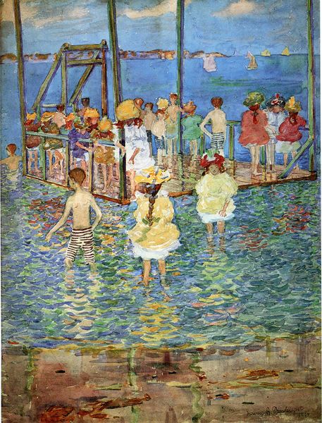 Maurice Prendergast painted this watercolor scene, St. Malo, capturing a bustling day at the beach. Observe the parasols, not merely as protection from the sun, but as symbols of leisure and social gathering. Parasols have a rich history, dating back to ancient civilizations where they signified power and status. The Assyrian bas-relief carvings depict royalty sheltered beneath elaborate parasols, and in ancient Egypt, they were associated with religious processions and divine protection. Here, they evoke a world of bourgeois leisure and display, a kind of secular procession by the sea. Consider how this symbol has evolved: from ancient emblems of divine authority to indicators of social standing. It’s a potent example of how cultural memory and adaptation shape our understanding and imbue objects with meaning. Note that the parasol's ability to offer shade touches on our deep-seated fears and desires related to exposure and protection. The image engages viewers on a deep, subconscious level, highlighting the cyclical progression of symbols.