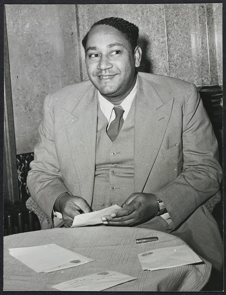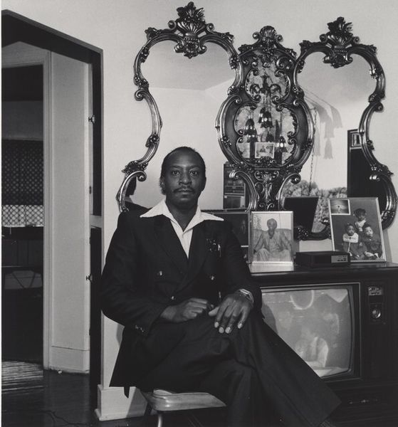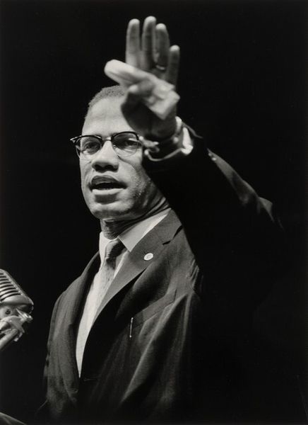 Curator: Let’s consider this striking photo from 1963, "Reverend Martin Luther King at Press Conference.” Editor: It hits you immediately, doesn't it? That forceful gaze, the speaking mouth... it embodies resolute determination. Curator: It's fascinating to consider the equipment, isn't it? That large microphone clipped to his lapel. These were the direct tools through which King shaped the social and political landscape. Editor: Absolutely. Beyond the practical function, I am drawn to what that microphone signifies symbolically: amplified truth, a voice for justice, speaking to the urgency of civil rights. It anchors him directly to that historical moment. Curator: Exactly. And looking closer at the materials themselves, consider the photographic paper used here and its degradation, its social value shifted. It also serves as material culture, representing a very specific technology in photojournalism, especially during the Civil Rights Movement. Editor: You’re right, the medium lends a stark rawness, perfectly fitting. It lacks any glamour; it emphasizes the authentic grit and urgency of that period. Curator: And how do you see that connecting to what he represents, not just within his lifetime, but over time? Editor: He is timeless, a pillar. When I see an image like this, his clothing is just a uniform: the symbols I pick out are the ones that tell me the struggle never truly vanishes, but reappears to each generation that sees this image. Curator: I see his well-tailored suit, and I'm immediately struck by questions of access and power during that era: How were these images made accessible to Black communities facing disenfranchisement? Did his choice of presentation – sharp suit versus more casual dress - factor into audience perception and media representation, reinforcing a sense of respectability? Editor: Interesting question. For me it raises something further – he’s not just a symbol *of* respectability, but an agent that creates the new imagery that embodies it, so that others could picture themselves this way. Curator: His presence undeniably affected not only his own image, but created a framework through which all those that followed, for generations. The very act of making this photograph becomes part of that lineage of power. Editor: Thinking about this image has really driven home just how much symbolic power a portrait like this can contain. Curator: Agreed. When looking at art through a lens that foregrounds its creation, labor, distribution and reception reveals so much more about its cultural and social meanings.