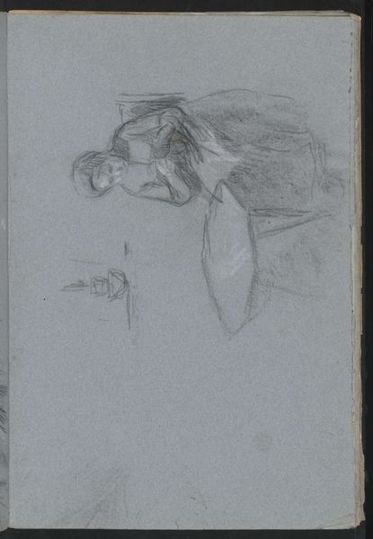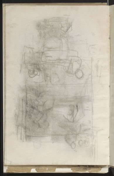 Albert Neuhuys' 'Lezende man' presents a series of sketches, a study in graphite, its muted tones creating an atmosphere of quiet contemplation. Dominating the composition is a square block in charcoal, framing the back of a seated figure and a blurred profile of a head. The overall effect is one of instability, where definition is suggested but never fully realised. Neuhuys uses a semiotic system, using the charcoal to signify 'figure' without fully committing to the clarity of its form. The structural absence invites us to question our own interpretation, as form and meaning remain in flux. The artist presents us with a subject that resists fixed meaning. The charcoal's indeterminacy isn't simply an aesthetic choice, but a philosophical statement about the provisional nature of knowledge and representation. The sketch unsettles conventional notions of realism, suggesting that what we see is always mediated, fragmented, and open to interpretation.