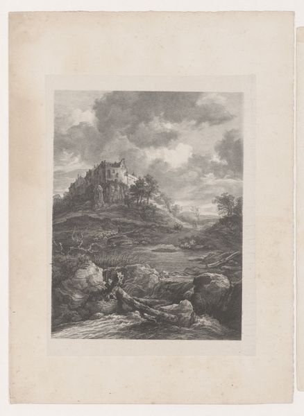 Here we see J.L.L.C. Zentner's etching, a landscape punctuated by a ruined castle, a haunting symbol of time's relentless march. The ruin, once a proud edifice, speaks of lost grandeur, echoing motifs found in Piranesi's etchings of Roman ruins. But Zentner infuses this symbol with a melancholic intimacy, moving from the grand to the personal. We find this motif across centuries, like the crumbling walls in Caspar David Friedrich's landscapes, each whispering tales of human ambition humbled by nature and time. Consider the psychological weight of ruins. They remind us of mortality, of the inevitable decay that awaits all human creations. Yet, they also hint at resilience, at the stories that linger amidst the stones. They represent a collective memory, a subconscious awareness of cycles of destruction and rebirth. The ruin is not merely a backdrop; it is an active participant in the human drama, ever changing, constantly resurfacing in the collective consciousness.