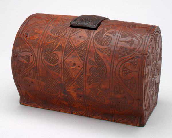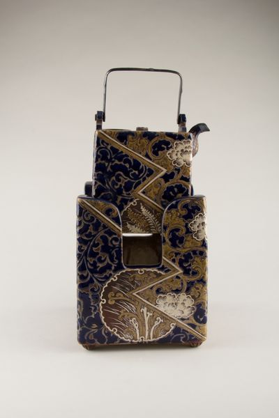 Editor: Here we have a "Footwarmer" dating from the early 17th century, created by an unknown artist. It combines ceramic and wooden materials to form what looks like a beautiful, ornamented box with a handle. I find the level of detail in the lid’s design especially captivating. What historical insights can you share about this intriguing object? Curator: It's a fascinating object. Think about the social context of 17th-century Asia. What does a "foot warmer" suggest about social hierarchies and domestic life during this time? Was it available to everyone, or mainly the elite? These kinds of objects were often a reflection of status and wealth. Editor: That makes a lot of sense. Considering the intricate craftsmanship, it must have been quite valuable. Do the materials, like earthenware and wood, suggest anything about its intended function or cultural significance? Curator: Precisely. Earthenware suggests functionality and perhaps accessibility, while the decorative patterns on the wooden lid, its handle, elevate its purpose. Was it strictly utilitarian, or did it also serve a symbolic function within the household? Also, how might the production and trade of ceramics during that period have impacted its availability? Editor: So it’s both functional and a signifier of status and trade networks? It challenges the binary between purely practical objects and high art. Curator: Exactly! Museums also shape how we perceive and value such objects. Why do you think an object like this is displayed in an art museum today? Editor: To showcase craftsmanship, perhaps? And to offer glimpses into the daily lives and aesthetic values of past cultures? Curator: Indeed! The foot warmer’s presence here speaks to the evolving definition of “art” and the museum's role in preserving and interpreting our shared human history. It is important to always consider the function and cultural context in every single aspect of the production and appreciation of the artwork, as well as the values instilled by institutions that showcase it.
