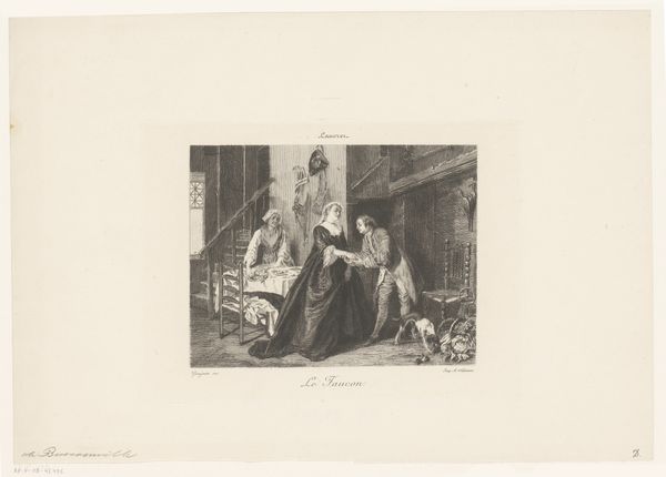 Guillaume Joseph Vertommen made this print of an interior scene using etching, a printmaking technique that dates back to the Middle Ages. The process involves covering a metal plate with a waxy, acid-resistant substance. The artist then scratches an image into this coating, exposing the metal beneath. When the plate is submerged in acid, the exposed lines are eaten away, creating grooves. These grooves hold ink, which is then transferred to paper under high pressure, resulting in the print we see. The quality of the etched line—its depth, width, and texture—depends on factors like the strength of the acid, the amount of time the plate is exposed, and the pressure exerted during printing. In this print, Vertommen skillfully uses these variables to create subtle tonal variations and textures. The scene is infused with a sense of depth and atmosphere, a testament to Vertommen’s mastery of this intricate, laborious process. Considering these material and social factors allows us to appreciate the full complexity of Vertommen’s print.