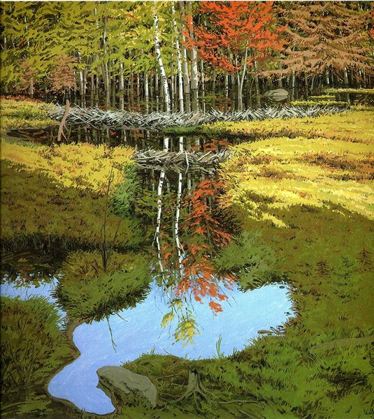 Neil Welliver made this untitled painting of a tree stump sometime in the twentieth century with oil on canvas. There's a real sense of the slowness and duration of time as a process in this painting, you can see it in the way the layers of green and brown build up the surfaces. The paint is applied in visible strokes, kind of blocky and square, like the image has been translated from one medium to another, almost pixellated. Look closely at the top of the stump; the moss is rendered with such care and attention that the surface almost seems to have a life of its own. It's this tension between abstraction and representation which I find so compelling - Welliver is doing something similar to what Fairfield Porter was up to in his landscapes; finding the extraordinary in the ordinary. The painting isn’t just about a stump; it’s about the act of seeing and representing.