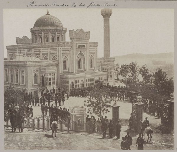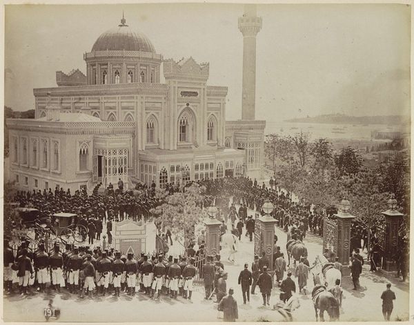 This photograph captures the reception of Sultan Abdülhamit II for Friday prayer at the Yildiz Hamidiye Mosque in Istanbul, taken by the Abdullah Frères. This image exists at the intersection of religion, power, and representation within the Ottoman Empire. The photograph situates Sultan Abdülhamit II, a man who ruled during a period of reform and westernization, against the backdrop of a traditional religious practice. The composition, with its emphasis on the crowd and the architectural grandeur of the mosque, suggests a carefully constructed image of imperial authority and public piety. The presence of military personnel underscores the Sultan's power, but also hints at the underlying tensions and potential for dissent within the Empire. Consider how the photograph reflects the gendered nature of public life, with the visible crowd likely composed primarily of men. The photograph serves as a reminder of the complex interplay between religious tradition, imperial power, and social order in the late Ottoman Empire, inviting us to reflect on the legacies of colonialism, orientalism, and cultural exchange that continue to shape our world today.