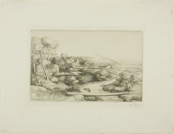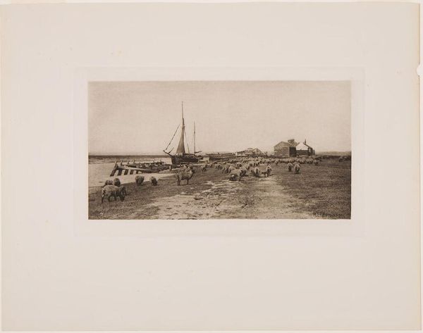 Editor: Liebermann's "Mending the Nets," seemingly from the late 19th or early 20th century, uses etching to portray women engaged in labor. The texture created by the etched lines is fascinating. What does this depiction of labor and materials say to you? Curator: The act of mending itself speaks volumes. Liebermann highlights the labor and the physicality of the fishing industry. The nets, the tools, the very act of repair. It shows how the means of production—fishing—relies heavily on this often-overlooked, repetitive work. Editor: So, you see this piece as drawing attention to the production process and the value of labor, rather than focusing on the aesthetic qualities of the image? Curator: Exactly. It's a conscious elevation of what was then considered "low" labor to the realm of fine art by emphasizing the process and the social context of the work. Editor: That's a great point. I’ll definitely look at art through the lens of material production more often now.