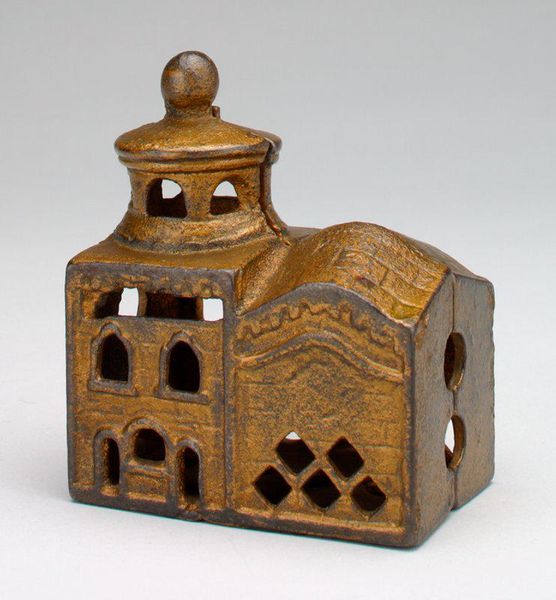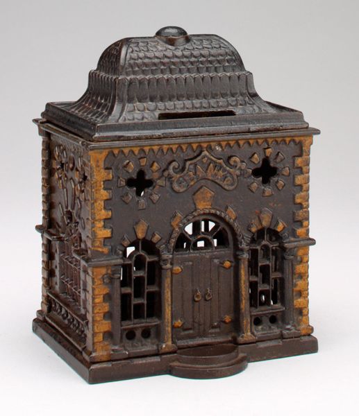 This mechanical bank, possibly made by John Hall, presents a miniature building, evoking the architecture of financial institutions. The very form of a bank—replicated here in a child's toy—carries a potent symbolism tied to security, trust, and prosperity. Consider the four-leaf clover motifs, symbols of luck and good fortune, placed above the inscription, Hall's Excelsior Bank. We find echoes of this motif in other forms, such as architectural ornaments across Europe, promising security, and alluding to a bountiful future. The act of depositing coins is not just a simple transaction; it's an engagement with deeply rooted cultural beliefs about wealth. Like ancient rituals, it reflects our collective aspirations. This bank becomes more than a mere object. It is a symbol of our hopes and fears, inviting us to partake in an age-old dance between desire and security.
