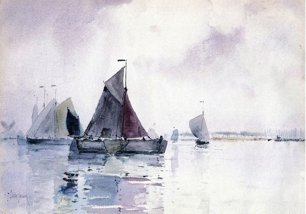 Editor: Here we have James McBey's "Laguna Veneta," a watercolor drawing from 1925. The soft, diffused light and reflections create a really dreamy, almost ethereal atmosphere. What historical context shapes our understanding of a scene like this? Curator: Well, think about Venice itself. It’s not just a beautiful place, but a potent symbol, especially in the early 20th century. McBey's choice to depict it focuses on a long tradition of Venetian painting. Does it strike you as celebrating Venice's glory, or perhaps hinting at a changing socio-political landscape? Consider the positioning and activity of boats within the overall picture. Editor: I suppose the sheer number of boats and their occupants hints at the bustling commercial aspect of Venice, which can be juxtaposed against its decaying architectural infrastructure. So McBey isn’t merely capturing a pretty picture, but he seems to show a specific interaction with that landscape and perhaps critiquing it, right? Curator: Precisely! The “pretty picture” itself becomes a commentary. These landscapes, particularly cityscapes, weren’t politically neutral. By carefully composing this work, and emphasizing the balance of activity and architectural elements, he offers, as you say, a nuanced view. Editor: I see now! So it is all about how McBey presents Venice, and why. His depiction tells its story! Curator: Exactly! And that story reflects the cultural and political dynamics of its time. By examining those factors, we can dig into deeper layers of what’s actually being said beyond that pretty vista. I encourage you to really push back and think critically on those seemingly idyllic images. Editor: This was definitely a worthwhile experience!