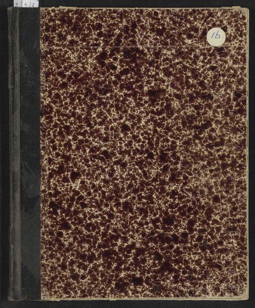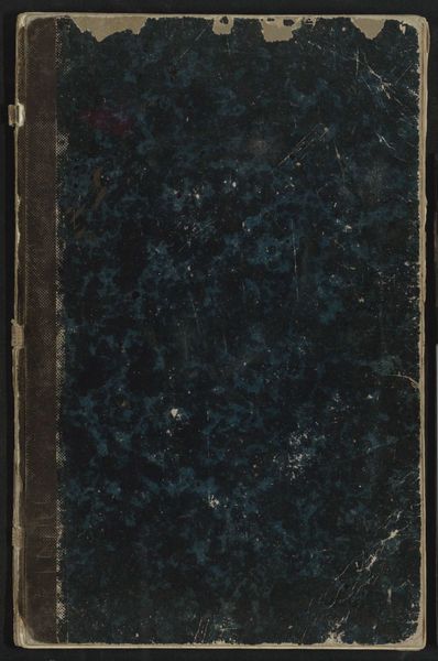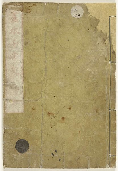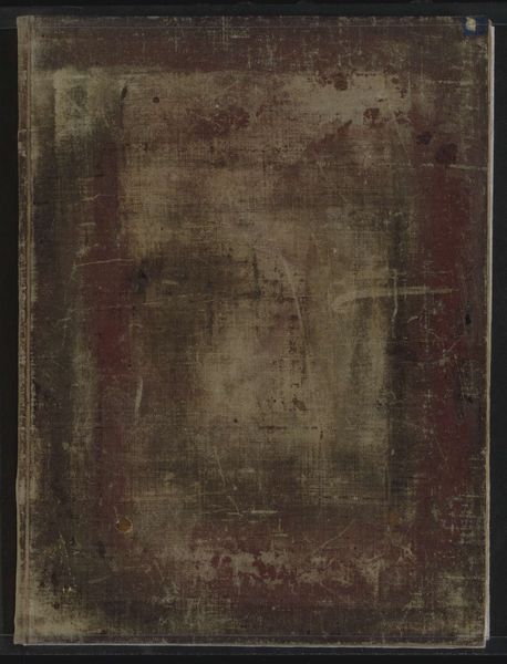 This is the cover of "Wetenswaardigheden over de roodharigen" created by an anonymous artist. The cover presents a muted color palette, dominated by a dark brown field that evokes a sense of age. A vertical rectangular label on the left contains faded text in what appears to be traditional characters. The texture of the cover is far from smooth; it seems worn, with spots and imperfections that disrupt the uniformity of the surface. The red binding of the book contrasts with the dark color and adds a structural element that emphasizes the book's physical construction. The composition of the cover, in its decay, invites us to consider the layers of meaning and history embedded within its surface. The very act of preserving such a worn object challenges traditional notions of value and beauty, suggesting an appreciation for the stories and experiences it has accumulated over time. The cover functions as a complex signifier, challenging the viewer to engage with its materiality, its history, and the cultural values it embodies.