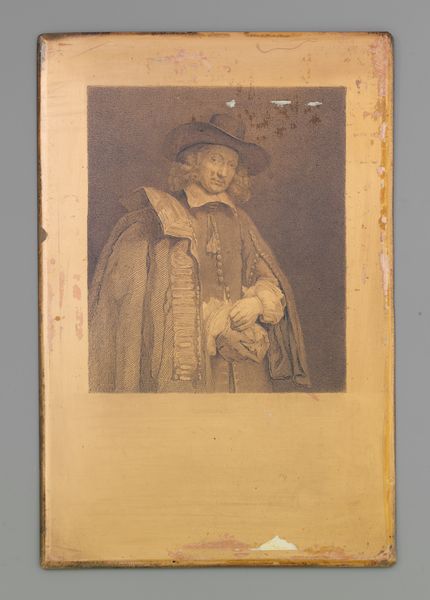 Curator: This is a work titled "Charles I", likely created sometime between 1649 and 1699, now residing at the Metropolitan Museum of Art. It appears to combine painting and possibly textile or even sculptural elements. Editor: The first word that springs to mind is 'melancholy.' Even with the decorative arts touches, there's a definite sense of subdued regality, an introspective aura about the figure. Curator: It’s intriguing, isn’t it? Consider the turbulent historical context, post his execution in 1649. The artwork becomes more than just a portrait, but a potential statement. Perhaps a coded expression of loyalty or lament. Editor: Absolutely. I’m struck by the prominence of the oval frame within the frame, visually isolating the subject. It adds to that feeling of separation, loss, and maybe even hints at a symbolic "window" to memory or mourning. Curator: It is worth pondering how political sentiment could be circulated or manifested during periods of oppression, and the choice of textile and possibly sculptural application also invites closer analysis into how the very medium of "Charles I" engages with contemporary social and political matters, or personal stories and agendas, from a monarch who struggled to find consensus from the different factions within Parliament and English society more generally. Editor: Looking at Charles' garments, I detect some curious symbolisms as well. Is that fabric purely decorative or is there possibly a deeper heraldic or even familial coding at work within those delicate textures? These details, no matter how small, held considerable power in those eras of symbolism. Curator: That's a compelling reading. Decorative arts frequently embed specific symbolic registers tied to family or political alliances, acting as carefully chosen signs of identity. We see it time and again in similar depictions of historical figures of nobility. Editor: Thinking about it, despite everything, this object stands as a subtle monument. A tangible reminder that even in the aftermath of tumultuous events, images carry layered meaning. It makes us reconsider assumptions about legacy, identity, and remembrance. Curator: Precisely. It’s not just about remembering Charles, it is about understanding how images shaped memory and even, perhaps, sustained contested power relations. Editor: Ultimately, 'Charles I', offers a space for multiple readings. The delicate balance between what is plainly visible and deeply encoded continues to beckon us towards unlocking those silent stories that images often conceal.