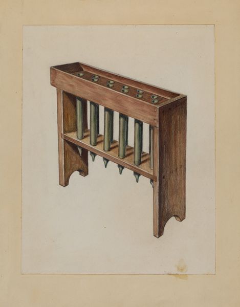Hugh Clarke made this drawing of a Candle Mold with what looks like watercolor and graphite. What strikes me is its stillness. The simple forms, rendered with such care and precision, invite a quiet contemplation. You can see a lot of gentle hatching, with close parallel lines which build up the shadows. The way the wood grain is depicted, with these delicate brown lines, makes me think about process. Each mark is a decision, a small act of translation from the real object to the page. It reminds me that artmaking is not just about the final image, but about the journey, the slow accumulation of choices. I wonder what it was like for Clarke, sitting with this object, observing it so closely. There's a kind of love in that act of looking, a desire to understand and capture the essence of something. It's not unlike the still life paintings of Giorgio Morandi, which share a similar sense of quiet observation. Ultimately, this drawing is a testament to the power of art to transform the ordinary into something extraordinary.