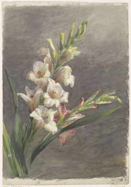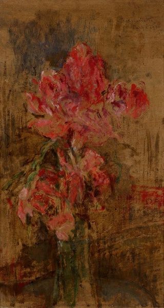 Curator: Here we have Tom Roberts' "Poppies," created around 1921, a delicate dance of watercolors and gouache. Editor: Instantly, I’m drawn into the tenderness of the scene; it feels quiet, introspective. The muted colors almost whisper of bygone summers. Curator: Roberts painted quite a few still lifes during this period, moving away, some critics have said, from his earlier, more well-known plein air subjects depicting rural life and national identity to the more accessible art market of the period. Editor: Oh, there's that familiar shift – the artist bowing to the economic realities. Yet, I'm almost grateful because this move created a dreamy intimacy. I mean, just look at how the light filters through the petals, they are like fragile paper. Did you notice the almost Impressionistic feel of the brushstrokes? Curator: It's that application that's so intriguing. The watercolor bleeds so expertly into each other and yet forms each and every individual element—we can see Roberts experimenting with conveying depth and texture through this handling of a lighter medium. Editor: Makes you wonder if those delicate colors and those flowers that we’re only allowed to gaze at for a short season—whether he knew of the passing of beauty, and how brief this life could be? Or perhaps was that simply his way of speaking to those who purchase art during a bleak period after the war? Curator: His choice to depict something beautiful to sell after such a period of tragedy isn't surprising considering how deeply entrenched art markets became after that era, catering to that market's values is exactly how he sold, not simply what he had to say. I always return to these questions about how society truly shapes every last corner of artistry. Editor: So even these innocent poppies had a sales motive, did they? Haha... regardless of the artist's intent or the market's influence, I'm walking away with a little bit more beauty than when I came in. Curator: Agreed, art is always filtered and open to each beholder. It prompts crucial discourse—and a new question each time that we engage.