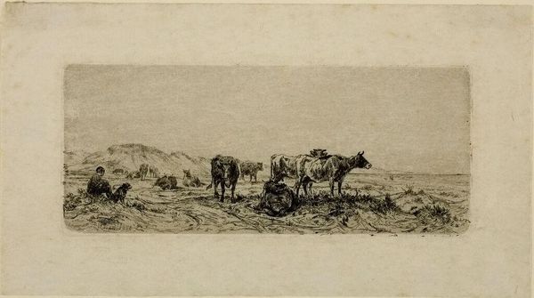 This is Kerr Eby’s “In the Open”, an etching capturing a scene from World War I. Eby, who served in the American Expeditionary Forces, offers a glimpse into the war's machinery. Here, horses and men struggle to move artillery across a barren, grassy field. What is the emotional tenor of this piece? There is an undeniable sense of both weariness and determination etched into the scene. The soldiers, hunched and obscured, become almost indistinguishable from the equipment and animals they handle. What does it mean to be blended into a landscape of war? Eby's work invites us to consider the experiences of those who fought, and their relationship to the machinery of warfare. Instead of glorifying combat, he portrays the gritty reality of war, one where identity is subsumed by duty and the human spirit is tested by the landscape of conflict.