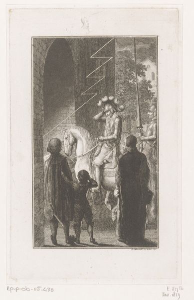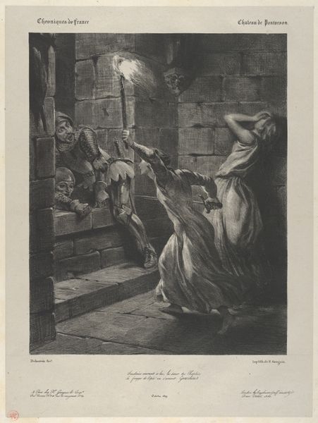 Eugène Delacroix created this lithograph, "The Sister of Duguesclin," in the 19th century. The scene pulses with drama, illuminated by a single torch that casts long shadows across the cold stone walls. Our focus is drawn to the sister, whose hands fly to her face in a gesture of terror. This motif of shielding the eyes appears throughout history, from ancient depictions of Medusa to modern cinema, always signaling overwhelming fear or horror. The gesture speaks to a deep, primal instinct: to protect oneself from witnessing something unbearable. Consider how this instinctive reaction resonates across time. It is more than just a physical response; it’s a psychological defense, an attempt to ward off the image's emotional power. Delacroix masterfully taps into this collective memory, engaging viewers on a subconscious level and creating a powerful, visceral connection. We see this symbol not in a linear fashion but as an echo, resurfacing and evolving.