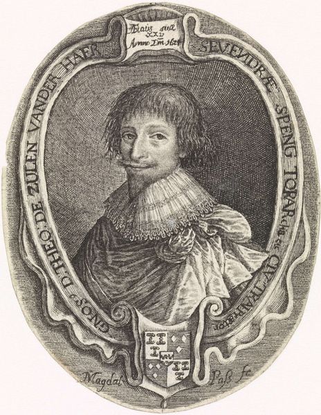 This is an engraving of Willem II, Prince of Orange, and it was made by an anonymous artist. Portraits of nobility in the Dutch Golden Age were powerful tools for shaping public perception, and this one is no exception. Willem II is depicted wearing armor and an elaborate hat, symbols of his military and aristocratic status. Yet, the artist also captures a certain softness in his face, perhaps hinting at the personal complexities beneath the princely facade. Consider the weight of expectation placed on Willem, as a young man destined for leadership in a society undergoing significant political and social change. The image subtly negotiates the tensions between his inherited power and the emerging democratic ideals of the time. It invites us to reflect on the burdens of leadership, and how individuals navigate their identities within the currents of history.