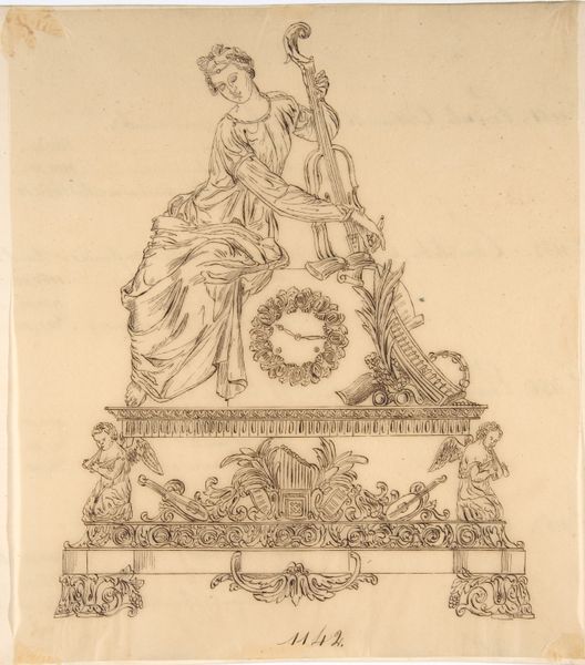Curator: This delicate pencil drawing is "Saint Peter Enthroned," created by Luigi Vanvitelli sometime between 1700 and 1773. It's currently held here at the Metropolitan Museum. Editor: The initial impression is one of ethereal grace. The spareness of the line contributes to an airy lightness. But there’s a precision to the composition despite its sketchy nature; notice the clear emphasis on line, form, and balanced symmetry in its organization. Curator: Absolutely. Looking at it through a materialist lens, it's fascinating to consider Vanvitelli's choice of pencil – a relatively accessible medium. This suggests a specific intended function, possibly a preparatory sketch for a larger work. We can ponder the labor involved and the economies of art production at the time, questioning the role of drawing within Vanvitelli's workshop. Editor: Precisely. Focusing on form, observe the baroque drama evoked through line alone. The implied movement in the swirling decorations surrounding the throne creates an almost palpable tension. Notice how the details of Saint Peter’s clothing are delineated in gentle lines, which bring out soft curves, contrasting the sharp edges of the throne's platform, conveying Peter's holy status. Curator: And how the materiality interacts with the message. This isn't just an aesthetic exercise. It's a carefully constructed image intended to communicate authority. The iconography, the throne, the keys…all symbols of power and legitimacy. It brings up important questions about the church's socio-political sway during the Baroque era and how Vanvitelli was employed. Editor: The artist meticulously crafts meaning through formal elements. Even without color, we understand the symbolism – keys to heaven, robes of authority, enthronement. I agree; there's a deliberate, almost calculated presentation, with semiotic complexity designed for educated viewers of the time. Curator: Examining Vanvitelli’s practice within his particular socio-economic context, and studying the labor dynamics within artistic workshops like his, brings a more complete awareness of the production of drawings such as this and situates the work within an economy of materials and skills, and that enriches our understanding. Editor: Indeed, both these levels of scrutiny—attention to material factors as well as the internal workings of visual language—converge on a deeper, fuller account of Baroque expression, even in a seemingly simple sketch.