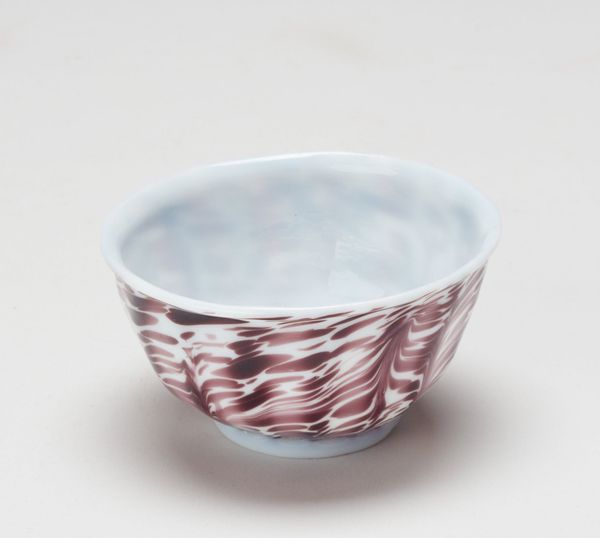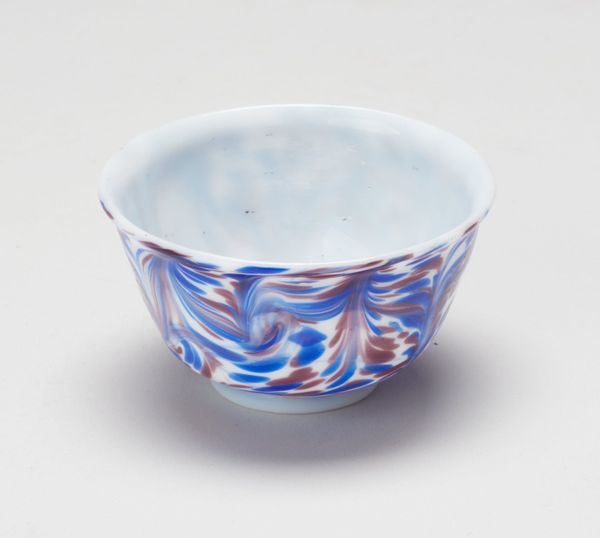 This petite cup was made by an anonymous artist, using glass. Consider the objects we use every day: a cup, a bowl, a plate. Whose hands made them and under what conditions? This delicate cup exists as both an aesthetic object and a functional one. This invites questions about labor, class, and access. For whom was this cup made? Was it for everyday use or special occasions? The mottled pattern is a kind of abstraction. We are left to wonder if the maker sought to mimic naturally occurring patterns such as those found in stone? Without knowing the maker, the cup invites a quiet reflection on the global history of artisanal craft. It reminds us to be attentive to the stories behind everyday objects.