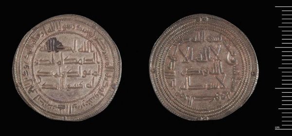 Editor: So, this is a Dirham of al-Muqtadir from Baghdad. It's a small, silver coin, and you can really see the wear and tear from being handled. What can you tell me about this piece? Curator: This dirham embodies the economic and social systems of its time. Look at the materiality – silver, a valuable resource, transformed through labor and trade into a symbol of power and a medium of exchange. Editor: So the material itself tells a story? Curator: Precisely! The coin's creation, circulation, and even its eventual loss or burial, speak volumes about resource management, craftsmanship, and the vast networks of exchange that defined al-Muqtadir's reign. It is the physical trace of economic practice. Editor: That's fascinating! I never thought about a coin in that way before. Curator: Seeing it as just currency obscures its larger place in the material culture.