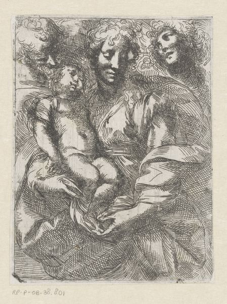 Simone Cantarini created this delicate etching, "Holy Family with Saint John the Baptist kissing the infant Christ's hand," sometime in the first half of the 17th century. Cantarini lived in a time and place– Italy– where the image of the Madonna and child was incredibly popular. However, here the artist introduces Saint John into the mix. The two infants create a dynamic of friendship, humility, and possibly even prophecy, as Saint John's kiss can be seen as an acknowledgement of Christ's divinity and destiny. There’s a humanity to the way Mary is portrayed here, as a mother holding her child, while Joseph looks on. By focusing on the intimacy between the figures, Cantarini humanizes the Holy Family, inviting viewers to connect with them on a personal level. The image subtly emphasizes relationality, and, perhaps, the importance of male bonds in the making of a man, even a divine one.
