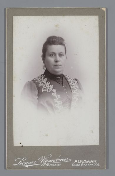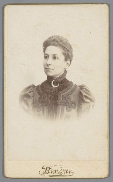 This photograph of an unknown woman was produced by Jac. Schotel Szn. in Rotterdam, using the carte de visite format. Let’s think about the material reality of this object. It’s a paper print, carefully mounted on card stock. The sepia tones are created through chemical processes, a now-antiquated technology that nonetheless democratized image-making in its day. This small portrait would have been relatively inexpensive to produce, and that's key. Photography in this period wasn't just for the wealthy; it was becoming accessible to a broader public. The rise of commercial photography studios reflects changing social dynamics, where portraiture was no longer the exclusive domain of the painted elite. Instead, it offered a tangible way for ordinary people to participate in visual culture and represent themselves. The amount of labor and resources poured into the production process highlights how photography was changing the landscape of both art and industry. Ultimately, viewing this carte de visite, we must acknowledge the immense social impact of photography, bridging the gap between fine art and everyday life.