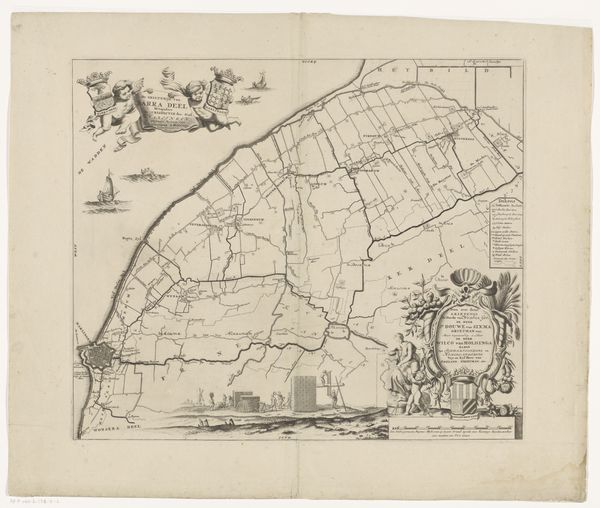 Editor: Here we have "Kaart van Amsterdam en de posities van de Pruisische troepen rondom de stad, 1787," a drawing printed around 1788-1789, by G. Tischbein. It depicts Amsterdam and its surroundings. It seems like such a precise document… almost cold. What do you see in this piece beyond just a historical record? Curator: I see a story of power, resistance, and shifting social landscapes embedded in these lines. This isn't simply a map; it's a representation of territorial control during a politically charged period. Consider the presence of Prussian troops: what does their positioning around Amsterdam signify? Think about the Patriot movement, seeking democratic reforms, and the Stadtholder's regime clinging to power. Editor: So, it's less about geography and more about politics? Curator: Exactly! Every line, every named "polder" or waterway, tells a story of ownership, access, and potentially, conflict. Who controlled these lands? How did this cartography reinforce existing power structures or, perhaps, challenge them? Maps were often used as tools of propaganda. Whose perspective is privileged in this image? How might those excluded from this representation have viewed it? Editor: That makes me see the drawing differently, not just as a depiction of a place but as a document shaping perception. Curator: Indeed. Consider, too, the visual language – the clean lines, the objective presentation. Does that neutrality truly exist? How does the act of mapping itself impose a particular order or narrative? What silences are present? Understanding these deeper narratives reveals a great deal about the socio-political context in which this map was created and consumed. Editor: This really shifts my thinking about what art, even seemingly technical drawings like this, can communicate. I will consider more deeply what stories the silences and inclusions can tell. Curator: Absolutely, and hopefully, the political environment that created the work. It's about looking beyond the surface to uncover the intricate layers of meaning embedded within the art object and context.